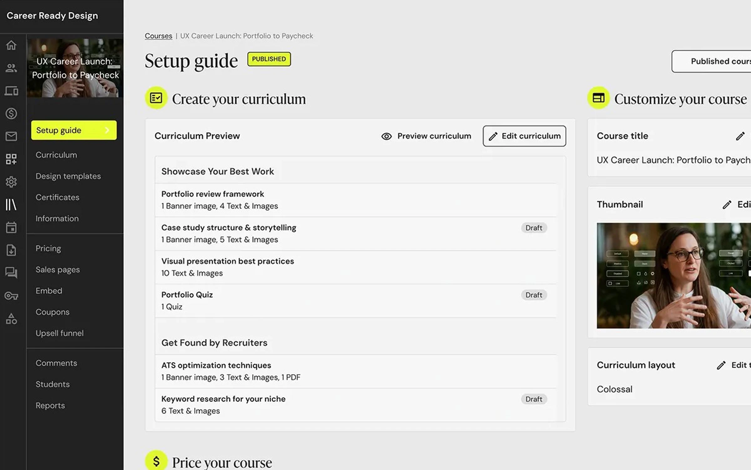 Create a branded, interactive, and user-friendly course environment tailored to your learners.